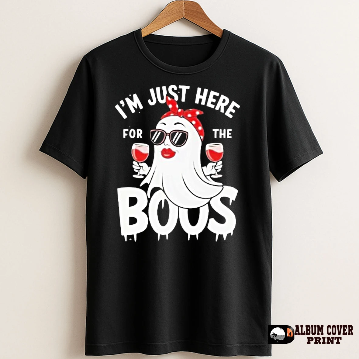 Original Im Just Here For The Boos Ghost Drinking Wine T Shirt Sweater