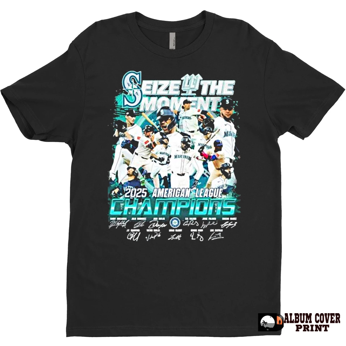 Original Seattle Mariners Seize The Moment 2025 American League Champions Signatures T Shirt Sweater