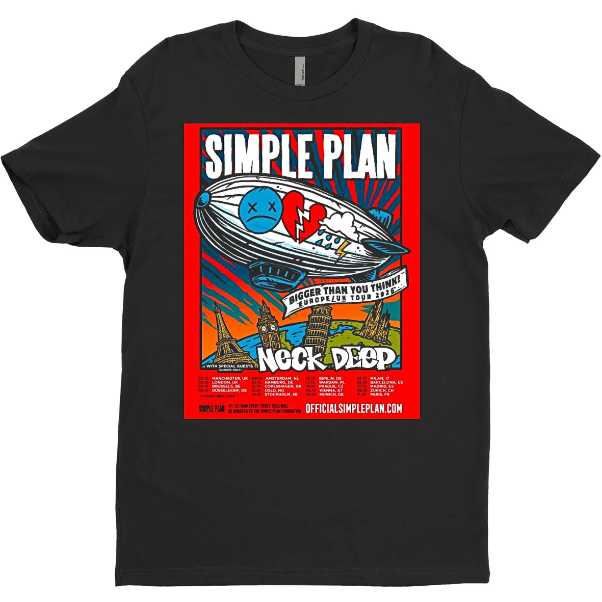 Original Simple Plan With Neck Deep Bigger Than You Think Europe Uk Tour 2026 T Shirt Sweater